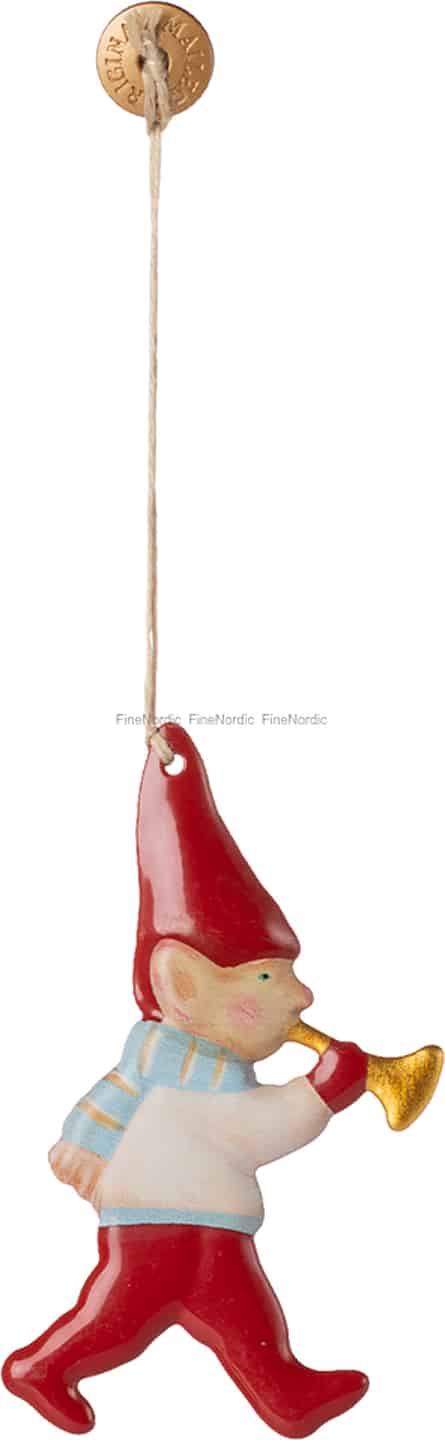 Se for deg den sarte lyden av en liten trompet som varsler at høytiden er her. Dette sjarmerende Maileg-nisseornamentet gir hjemmet ditt en eventyrlig stemning, og det glade ansiktsuttrykket inviterer til å skape dyrebare minner.
