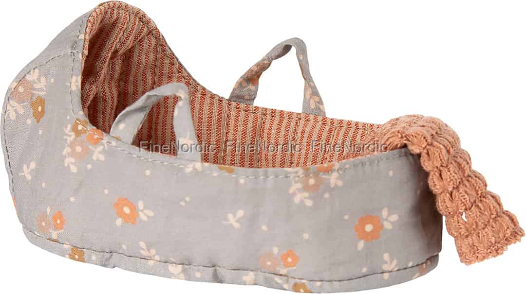 Sørg for at din minste Maileg-venn alltid har det lunt og trygt, uansett hvor eventyrene måtte føre dere. Denne sjarmerende miniatyr-bæreliften er en myk og trygg havn, perfekt skapt for ettermiddagslurer og fredfull søvn.