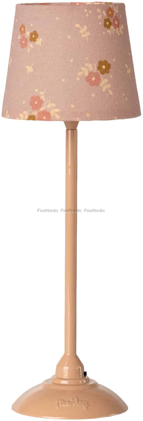 Se for deg Maileg-vennene dine samlet i stuen, med en bitteliten eventyrbok åpen på gulvet. Denne utsøkte miniatyrlampen er detaljen som gjør scenen komplett. Den er laget av metall med en myk, mørk pudderfinish og har et klassisk design som føles både tidløst og naturtro. Lampeskjermen i stoff, med sitt sjarmerende blomstermønster, tilfører et hint av farge og varme, og forvandler ethvert lite rom til en koselig krok for lesing og drømmer.