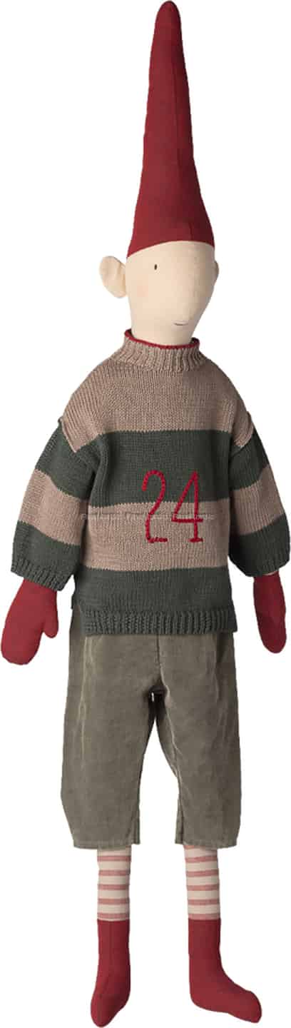 Se for deg den stille magien på julaften, med en vennlig vokter som passer på hjemmet ditt. Denne sjarmerende Maileg-nissen, med sitt milde uttrykk og lune genser, bringer den hjertevarmende følelsen av tradisjonell skandinavisk jul rett hjem til din familie.