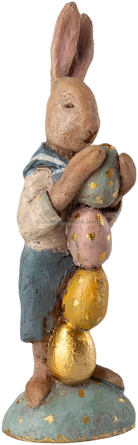 Se for deg denne sjarmerende figuren på peishyllen i vår. Med et forsiktig grep om tårnet sitt av glitrende egg, bringer Mailegs påskehare et pust av nostalgisk magi og en følelse av rolig feiring inn i hjemmet ditt.