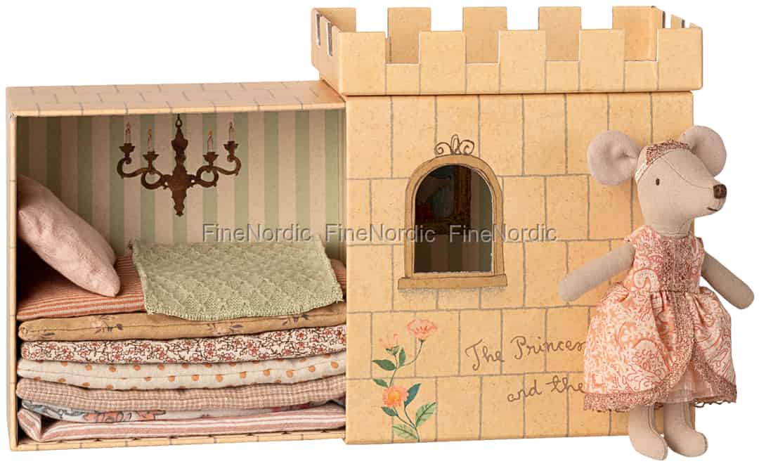 Kan du kjenne en bitteliten ert gjemt under en høy stabel av myke madrasser? Med dette fortryllende lekesettet fra Maileg vekkes det klassiske eventyret til live, klart for at den lille kan hjelpe en søt prinsessemus med å finne sin lune hvileplass.