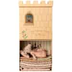 - Et slott og en koselig seng i ett: Det vakkert illustrerte slottet er ikke bare en kulisse for historier; det kan skyves opp for å avsløre et soverom, og oppbevarer musen og sengetøyet hennes trygt etter leken.