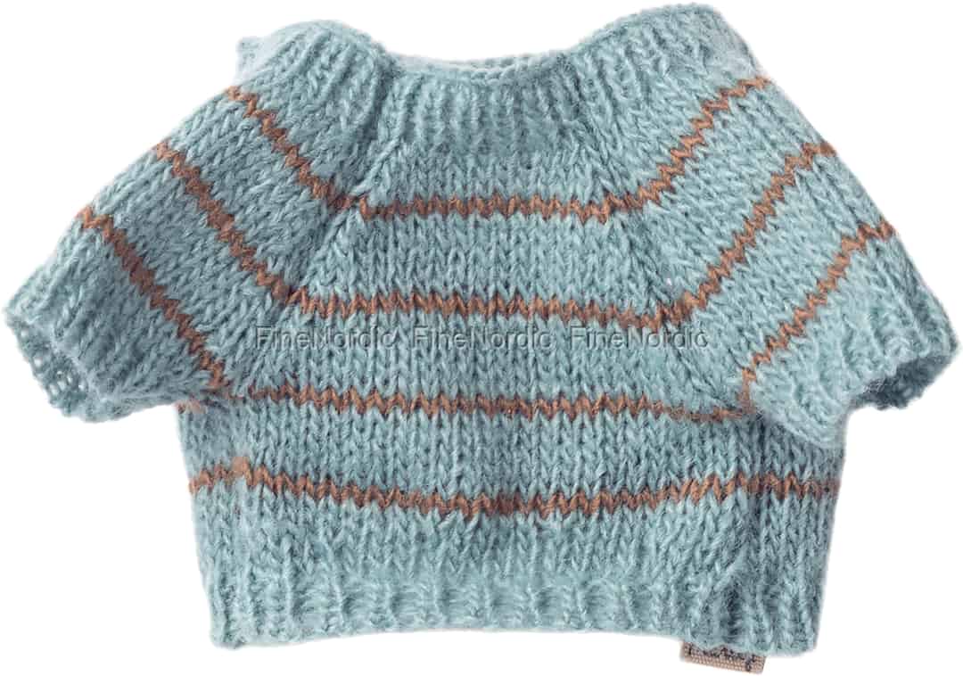 Når en mild bris hvisker om eventyr, må du sørge for at din lille Maileg-valp er kledd for anledningen. Denne vakkert strikkede genseren, i en myk, støvblå farge, er det perfekte plagget for dager fylt med historier.