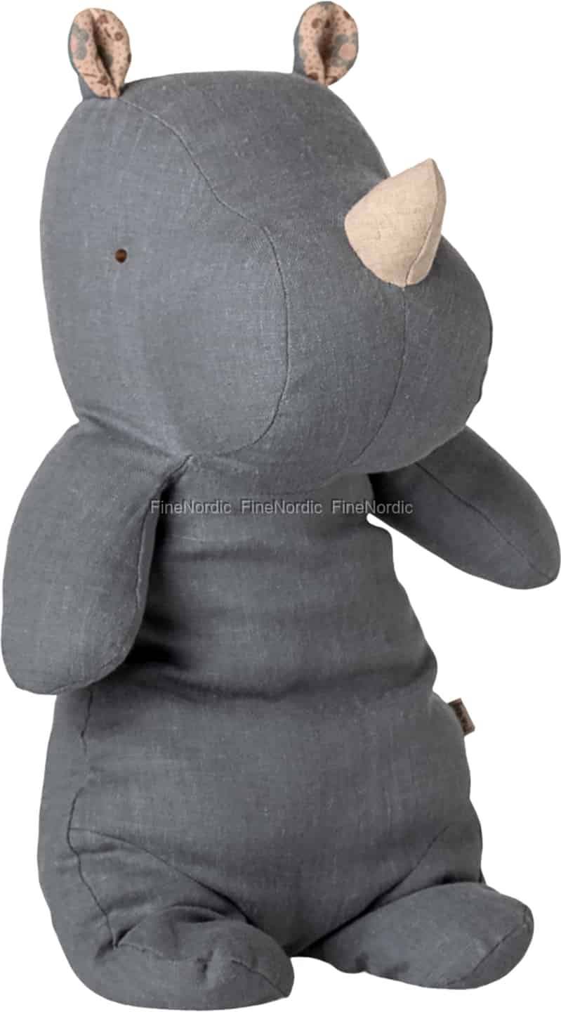 Ønsk denne milde kjempen fra Mailegs safari velkommen inn i hjemmet ditt. Neshornet er laget av det mykeste, støvblå stoffet og er klar til å bli en kjær venn for fantasifull lek og de aller koseligste stundene.