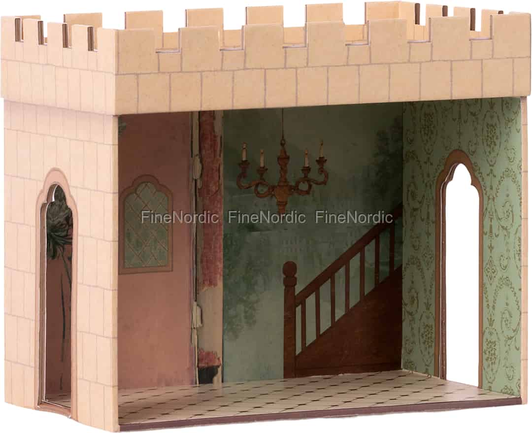 Denne sjarmerende salen fungerer som det perfekte bakteppet for barnets fantasifulle verden. Se for deg musene som samles på det flislagte gulvet under det myke skinnet fra den trykte lysekronen, eller titter gjennom borgtindene for å se ut over kongeriket sitt. Laget av vakkert illustrert papp, gir den en tidløs eventyrkvalitet som vil bli verdsatt i årevis, og blir hjertet i utallige lekeeventyr.