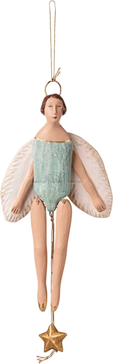 - En grasiøs og iøynefallende størrelse: Med en høyde på 20 cm har denne engelen en fantastisk tilstedeværelse. Størrelsen er perfekt for å bli et fengslende blikkfang på juletreet eller hengende fra en peishylle.