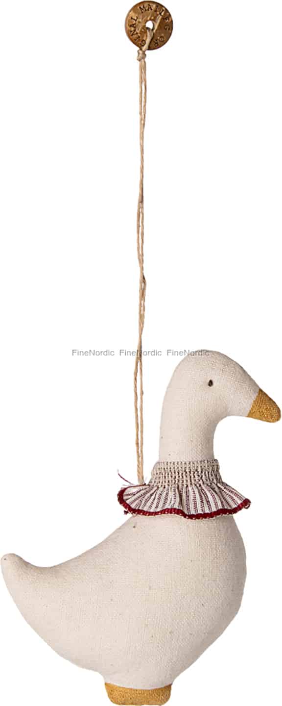 Ønsk velkommen et snev av Mailegs fortryllende verden inn i hjemmet ditt med dette nydelige gåseornamentet i stoff. Denne lille karakteren er skapt med den omhu og detaljrikdom som kjennetegner dansk design, og er klar til å bli en del av dine kjæreste julefortellinger. Den myke, teksturerte bomullskroppen føles herlig å ta på, mens det lille perleøyet og den flotte, rødstripete kragen gir den en helt egen personlighet. Det er mer enn bare pynt; det er en liten venn som venter på å få deg til å smile.