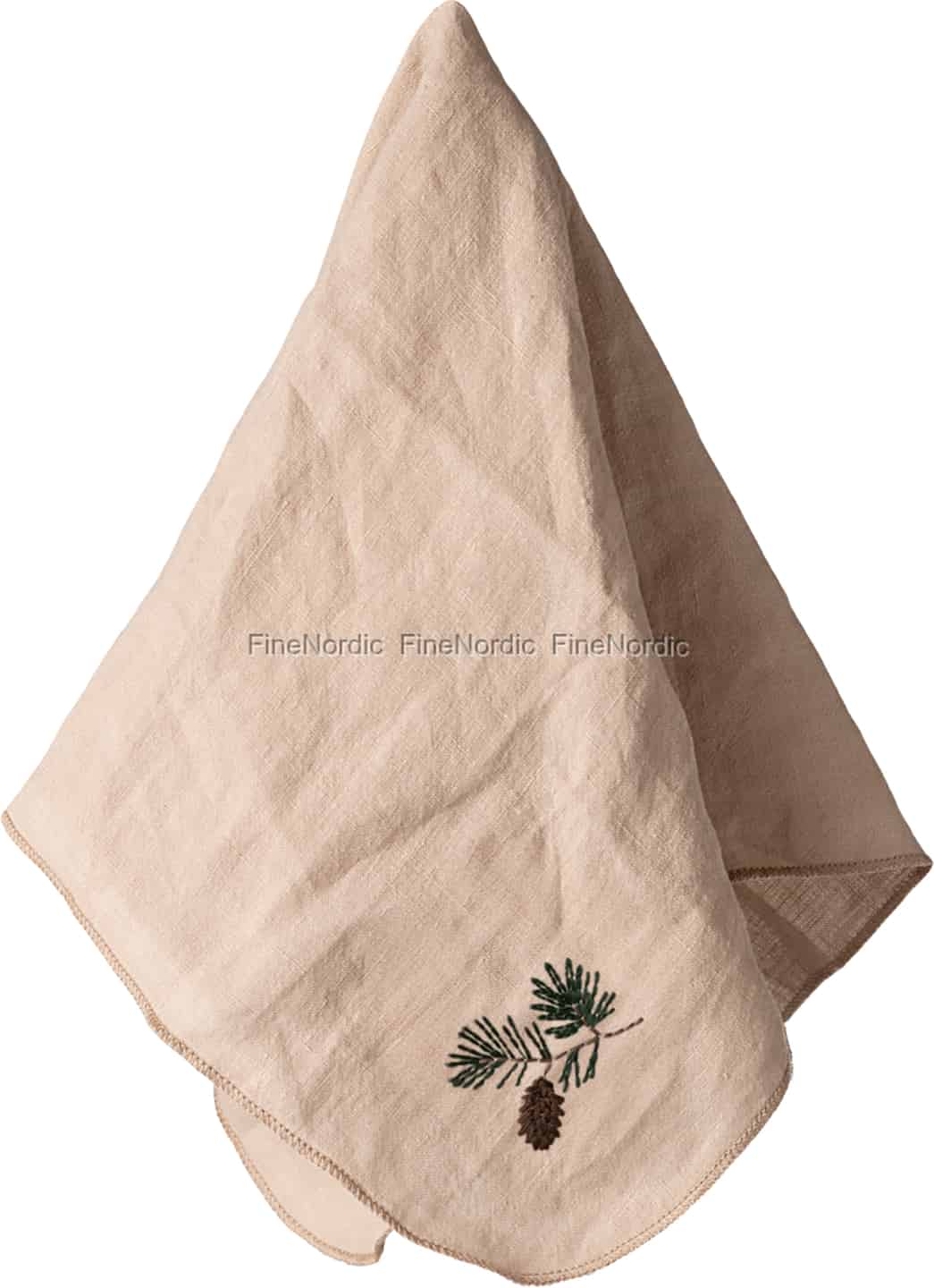 Denne julen kan du invitere den stille magien fra en skandinavisk skog til bords. Hver Maileg-serviett er som et lite lerret, laget av vakkert teksturert, naturlig lin som føles herlig mykt mot huden. Stjernen i fortellingen er det sjarmerende konglebroderiet, et motiv som startet som en håndtegnet illustrasjon av merkets grunnlegger, Dorthe Mailil. Det er en detalj som forteller om turer gjennom krisp vinterskog og den enkle, autentiske skjønnheten man finner i naturen.
