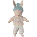 Se for deg en klar vintermorgen, der små fotspor preger snøen. Denne lille kaninen, god og varm i sin mintblå lue og mønstrede genser, er klar for å bli med barnet ditt på en magisk reise. Fra hviskede hemmeligheter i en koselig krok på lekerommet til store eventyr i hagen, gjør dens milde uttrykk og myke, klembare form den til en umiddelbar og elsket venn. Sansen for detaljer, et kjennetegn ved Mailegs design, er tydelig i hver eneste søm, fra den tykke strikken i genseren til den myke vevingen i de små buksene. Dette er ikke bare en leke; det er en karakter som venter på at en historie skal begynne.