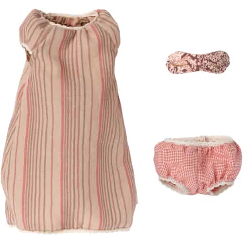 Maileg Stripet Nattkjole Med Sovemaske For Medium Mus
