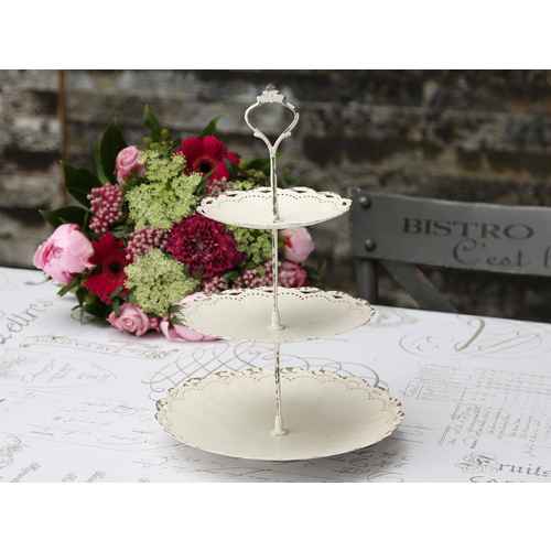 Chic Antique Etagere med 3 Fat - Patina Antikk Hvit Ø 23 cm Utgått
