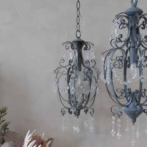 Chic Antique Lysekrone med prismer - Antikkgrå - Liten Utgått