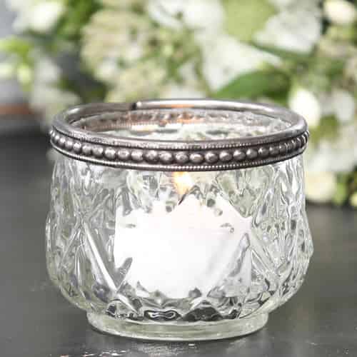 Chic Antique Telysholder med Perlekant - Glass Utgått