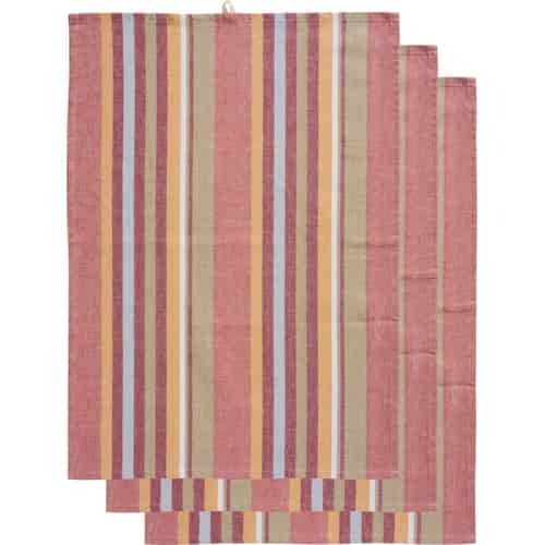 Ib Laursen Kjøkkenhåndkle - med flerfargede striper - 3 stk buntet med bomullsbånd