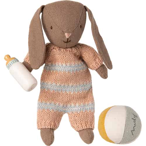 Maileg Kanin Micro - Brun - Støvrosa strikket drakt - med magnetiske hender