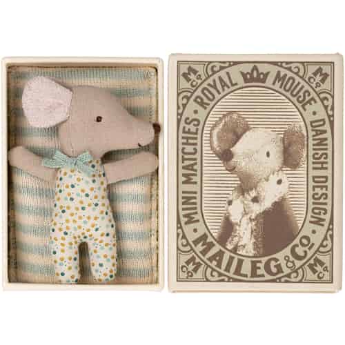 Maileg Medium Mus i Lyseblå Stripete Pyjamas Med Sovemaske
