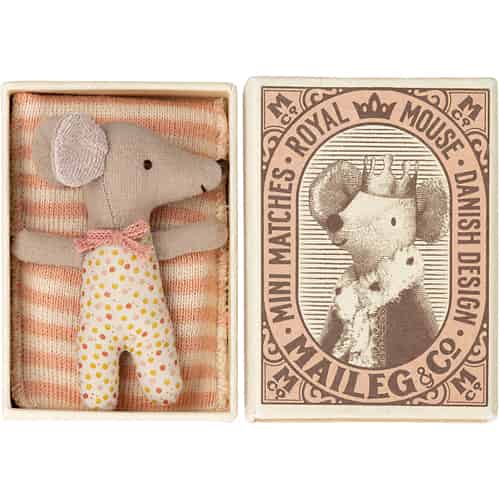 Maileg Medium Mus i Stripet Nattkjole Med Sovemaske