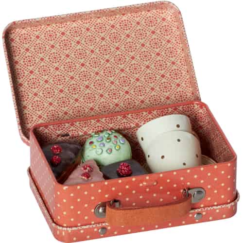 Maileg Kanintilbehør - Metall Koffert - med 4 Cup-Cakes og 2 Kopper