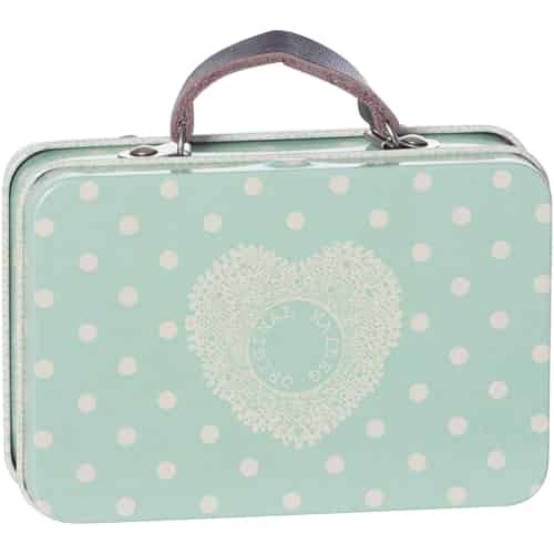 Maileg Kanintilbehør - Metall Koffert - Store Prikker - Dusty Blue