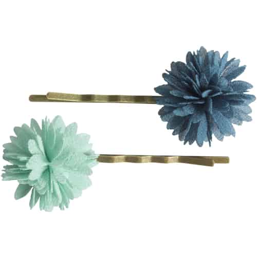 Maileg Barn - Hårspenner - Satin Blomster - Aqua - 2 stk
