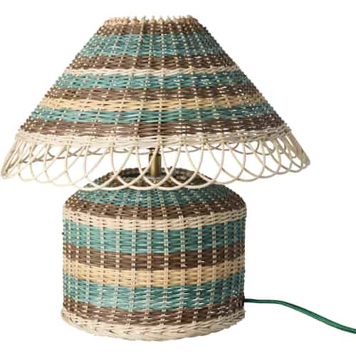 Rice Rattan bordlampe - Brunlige striper - E27-sokkel og 2-pins støpsel - Liten
