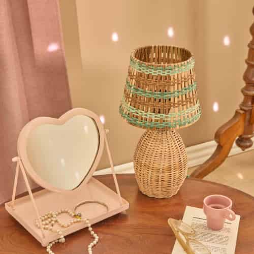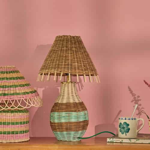 Rice Rattan bordlampe - Rosastriper - E27-sokkel og 2-pins støpsel - Liten