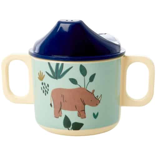 Rice Melamin Tutekopp - 2 Håndtak og Lokk - Blå Jungle Animals
