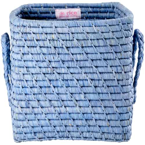 Rice Raffia Kurv - Kvadratisk - Raffiahåndtak - Blå - Liten