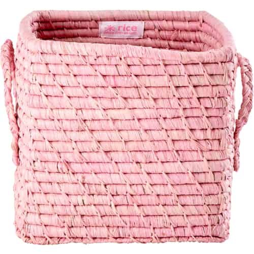 Rice Raffia Kurv - Kvadratisk - Raffiahåndtak - Soft Pink - Liten