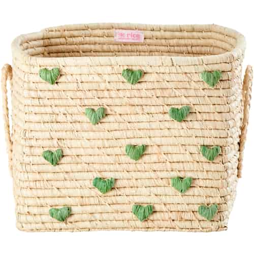 Rice Raffia Kurv - Kvadratisk - Raffiahåndtak - Grønne Hjerter