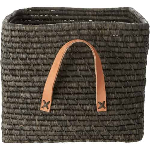Rice Raffia Kurv - Kvadratisk - Raffia Handles - Mørkegrå Rose
