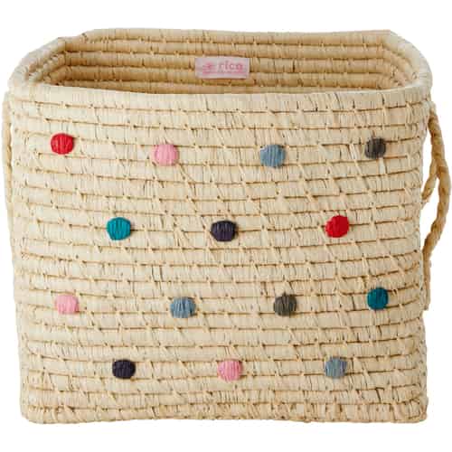 Rice Raffia Kurv - Kvadratisk - Dots - 'Believe in Red Lipstick' Colors