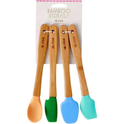 Rice Silikon Skraper - Bambus Håndtak - 4 'Let's Summer' Colors - Liten - Sett med 4