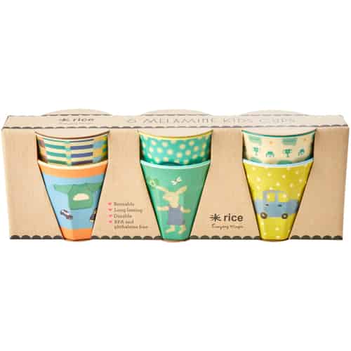 Rice Melamin Barnekopper - Bunny - Grønn - Liten - Sett med 6 i Gaveeske