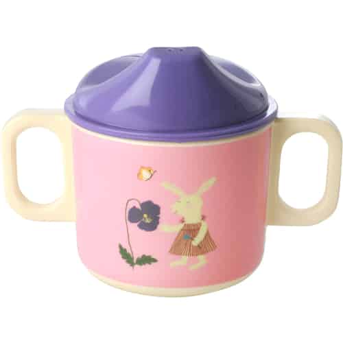 Rice Melamin Tutekopp - 2 Håndtak og Lokk - Kanin - Rosa
