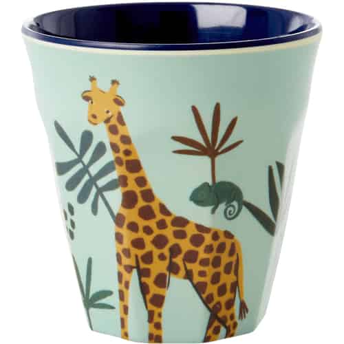 Rice Melamin Barnekopper - Jungel Dyr - Blå - Liten - Sett med 6 i Gaveeske