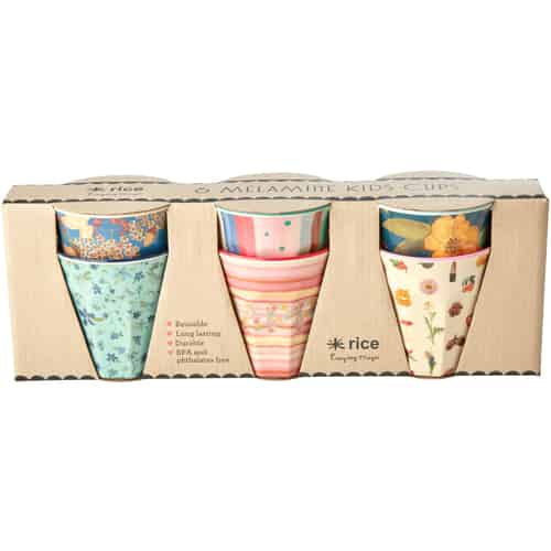 Rice Melamin Kopper - 'Believe in Red Lipstick' - Liten - Sett med 6 i Gaveeske