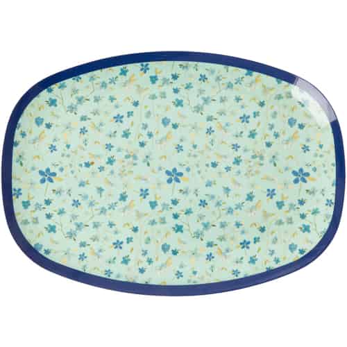 Rice Melamin Tallerken - Rektangulær - Blomster - Blå