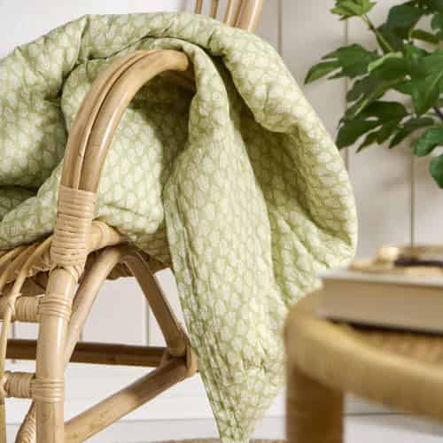 Ib Laursen Quilt Caja Støvet Grøn med Hvite Blomster 130 x 170 cm På lager