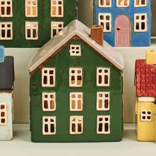 Ib Laursen Hus for telys - "Nyhavn" - Grønn - Gul dør på siden På lager
