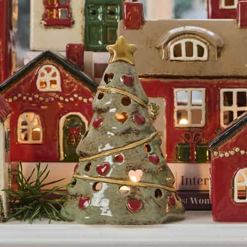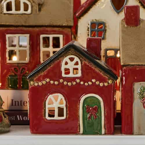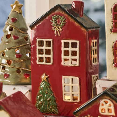 Ib Laursen Hus for Telys - "Stillenat" - Rødt tak og juletre foran huset På lager