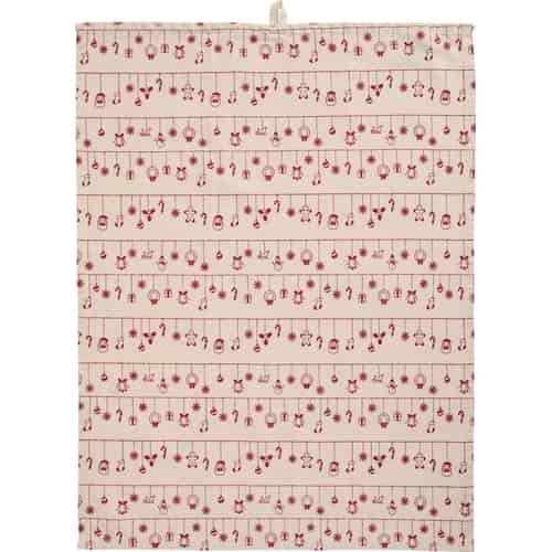 Ib Laursen Kjøkkenhåndkle - "Hollie" - Natur - Røde julemotiver på snor På lager
