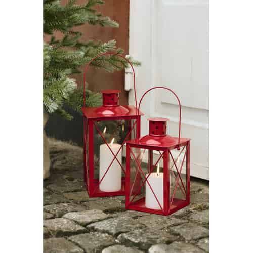 Ib Laursen Lykt - Liten - Rød firkantet - med kryss over glasset På lager