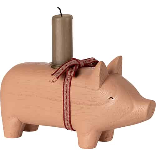 Maileg Lysestake i tre, liten gris (Ø ca. 1,2 cm) - Rosa På lager