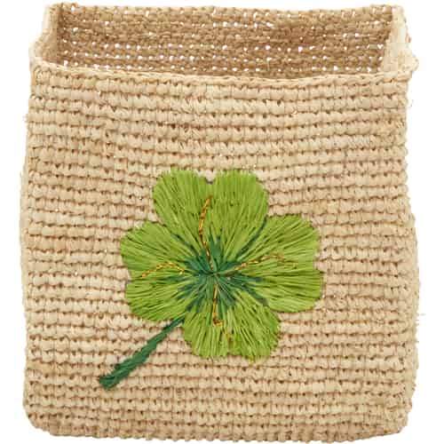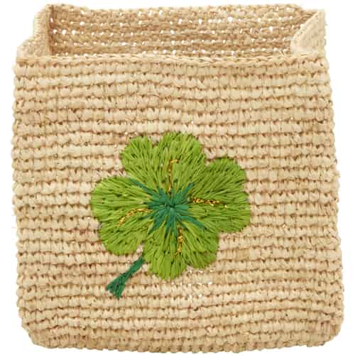 Rice Raffia Oppbevaringskurv - Kvadratisk - Natur - Kløver Broderi - Liten Utgått