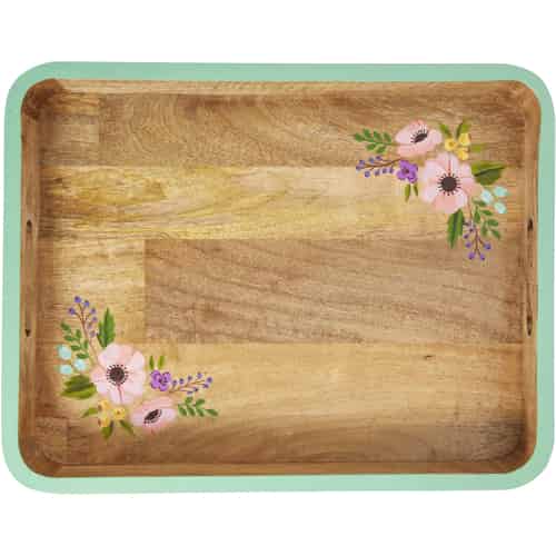Rice Trebrett - Rektangulært - Håndmalt Mint Kant og Blomster - Stor Utgått