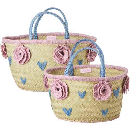 Rice Raffia Oppbevaringskurve - Natur - Blomster - Sett med 2 Utgått