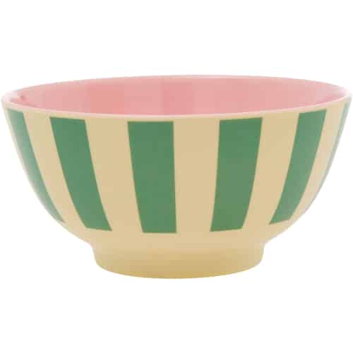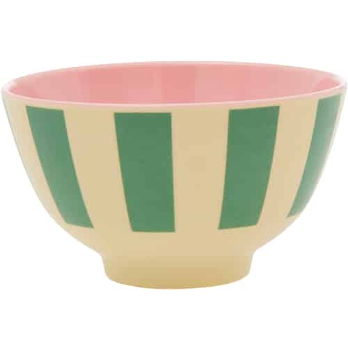 Rice Melamin Skål - Grønn - Green Stripe Print - Liten Utgått