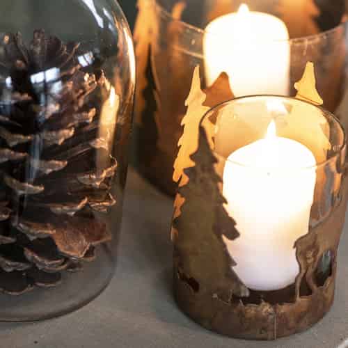 Ib Laursen Lysestake til Telys med Trær i Metall Rusten På lager